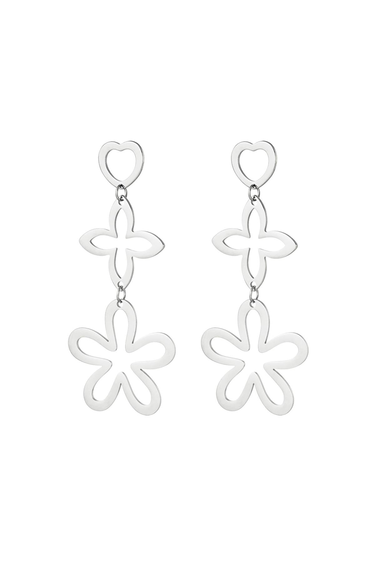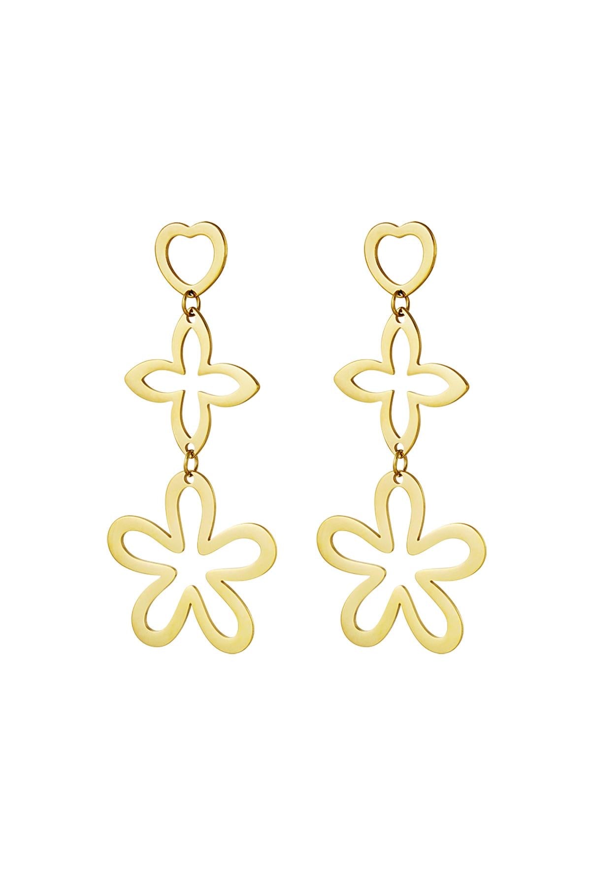 Hoe leuk zijn deze gouden statement oorbellen met drie prachtige bedels in de vorm van een hart en bloemetjes.